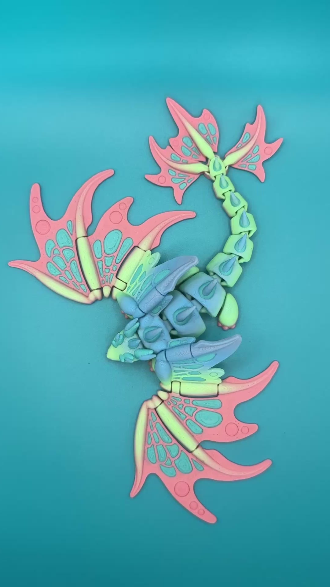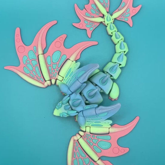 Featuring articulated wings, legs, and tail, this handcrafted dragon is designed for dynamic posing and endless imaginative play. Its vibrant pastel colors and delicate wing patterns make it a standout piece, perfect for collectors and kids who love magical creatures.