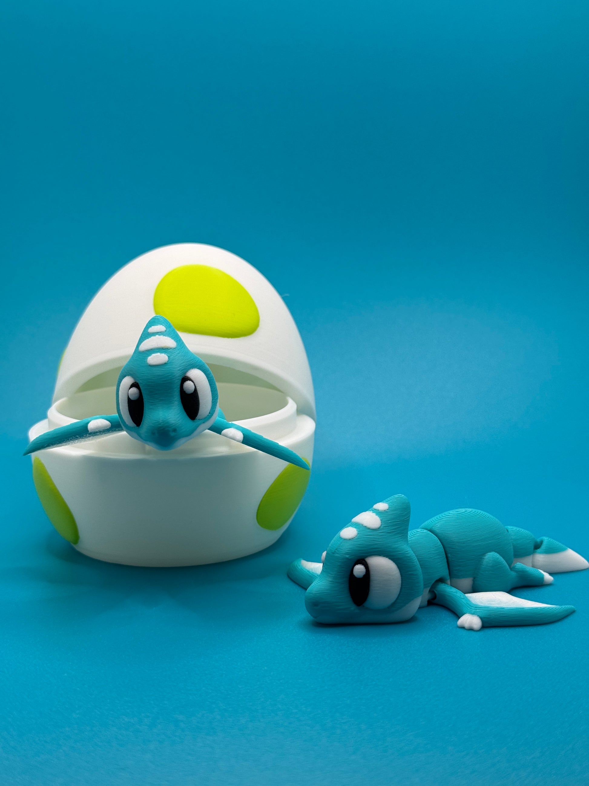 Soar into prehistoric playtime with Skyler the Baby Pterodactyl! This adorable, 3D-printed dino buddy comes with a matching speckled egg case that doubles as a cozy nest and travel pod. Whether your little one is flying through the living room or setting up a dinosaur habitat, Skyler is ready for adventure!